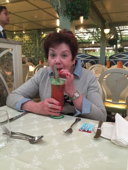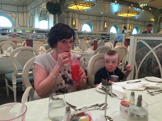 After the fun, we fed the kids dinner and got ready for a fancy, adults-only dinner at Remy. Remy is a rat in Ratatouille, the Disney movie if you’ve never seen it. Remy the restaurant is an indulgent, over-the-top French restaurant that doesn’t hold back a thing. There’s an extra charge to dine, but I thought it’d be something Dave, my mom and I would enjoy. And we did!!! I won’t need to go again, but it was a lovely evening and a great way to relax and begin our cruise after all the travel and kid schlepping.