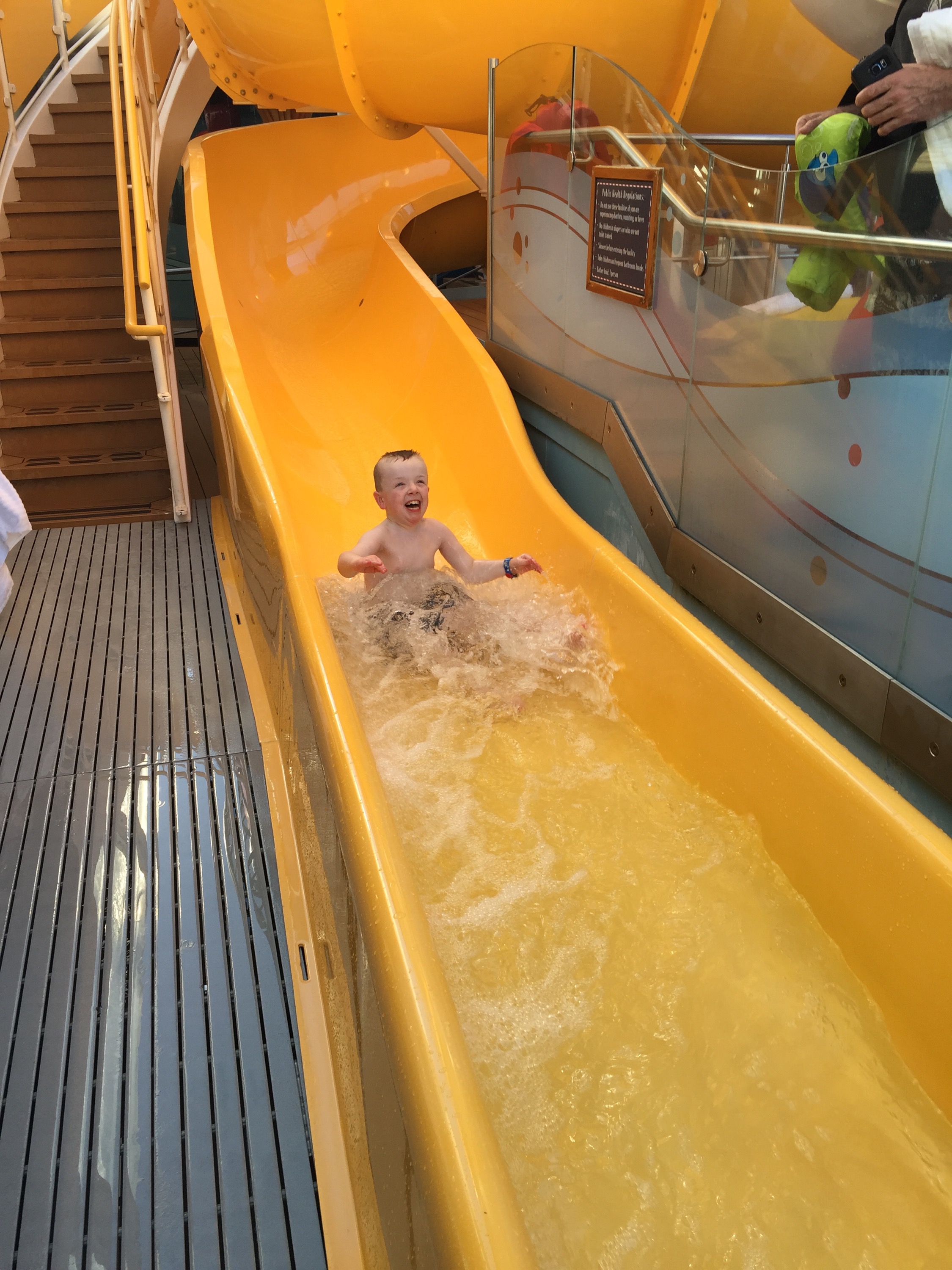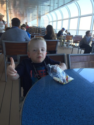 This day on the ship was technically a day we could get off and explore Nassau, Bahamas. But, on such a short cruise (with no days at sea), I thought we’d be better to stay on the ship and explore with less crowds. We weren’t the only ones with this idea, but it all worked out fine. Dave and Ben waited (for a lengthy period) for the AquaDuck. This is a water slide/roller coaster of-sorts that circles the whole ship. It’s awesome. I think if the wait were shorter, they would have gone more than once, but they liked it, nevertheless!